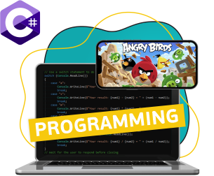 Обучение детей созданию игр в двумерной графике на C# (си шарп) на базе КиберШколы KIBERone в Уссурийске — это фундамент, позволяющий понять логику мощных, гибких и популярных языков программирования и перейти на более сложные уровни. Освоить азы игровой разработки и создания игровых сценариев на этом современном, простом и удобном в использовании языке может любой школьник в возрасте от 12 лет, имеющий базовые навыки пользователя ПК. На занятиях, повторяя основы программирования, дети узнают обо всех возможностях и преимуществах работы в этой среде, получат практические навыки и научатся самостоятельно создавать действительно хорошие игры.